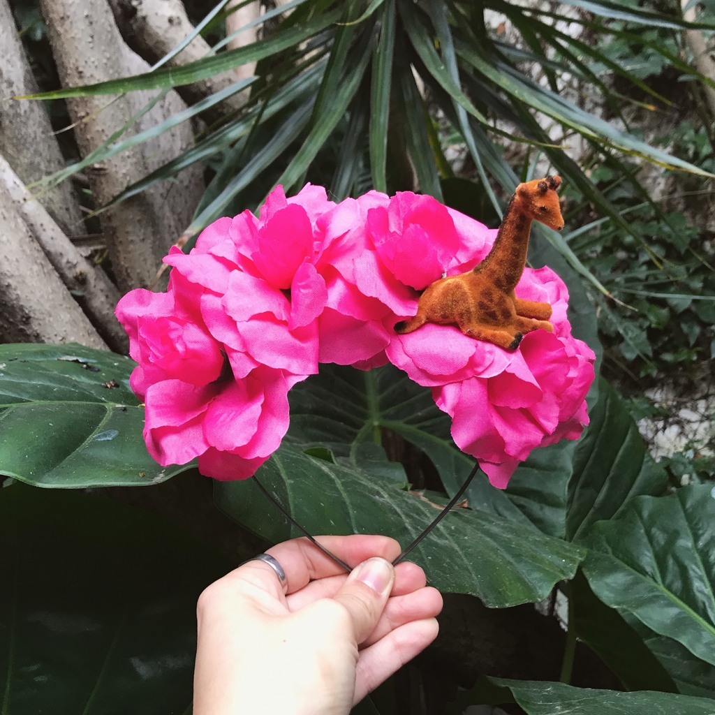 Siempre soñé con tener un bambi. En el mundo que yo creé no solo tengo un bambi, sino que además lo llevo en mi cabeza. \n \nVinchas de flores grandes en surtidos colores y combinaciones con animalitos de safari. Consultanos por el animal que quieras y el color de las flores para ver si está en stock. Si no lo aclarás enviamos sorpresa. \n \n¡El precio corresponde a 10 vinchas con animalitos surtidos!