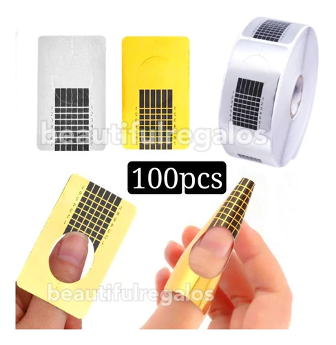 Rollo de 100 etiquetas autoadhesivas para construcción de uñas esculpidas o gelificadas.