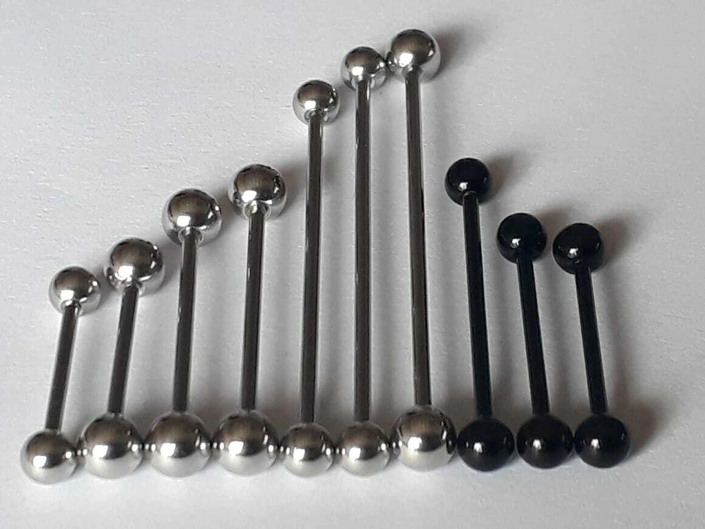 105 unidades de barra de Acero Quirurgico lengua o industriales !!!Surtidas en largos distintos, bolitas acero y acrilico !Varias medidas disponibles !!!!El mejor Acero Quirurgico !!!Bolitas de acrilico en colores lisos o con dibujos, bolitas de acero varios tamaños !!!Hacemos envios a todo el Pais !!!No dude en connsultar !!!