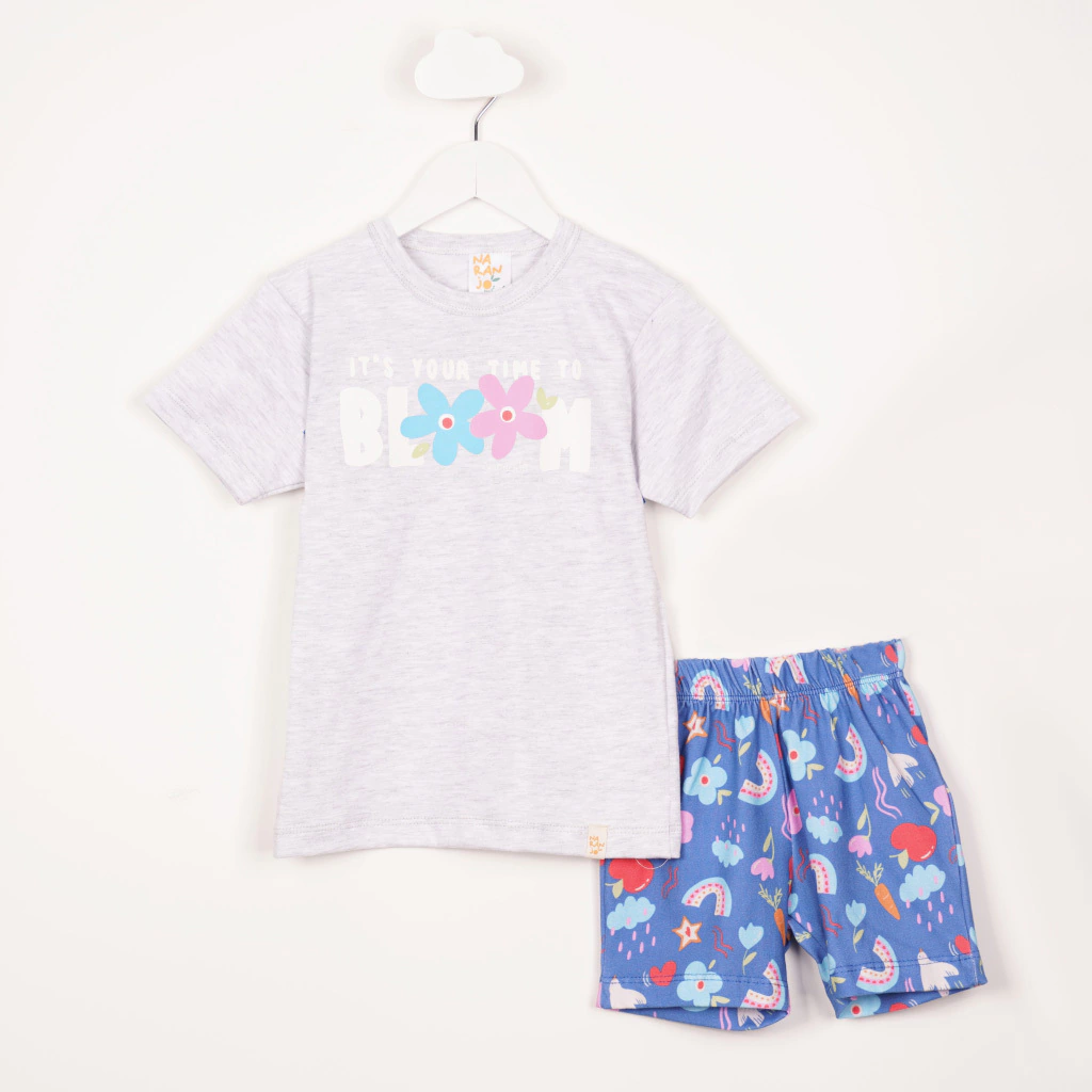 Conjunto dos piezas remera manga corta con estampa central y short elastizado de Niña .