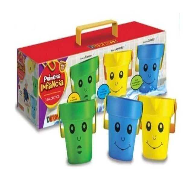 3 BALDECITOS DE LA LINEA DURAVITApto para jugar en el agua! Cada balde tiene una salida de agua diferente!verde por el frenteazul por abajo tipo lluviaamarillo en el picoEdad: +9 meses
