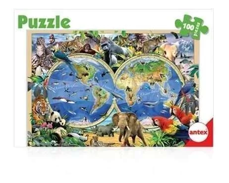 Puzzle 100p Mundo Puzzle con juego en el dorso, la medida de la lamina es de 34 x 48 cm aprox. Artículo: 3034 Edad: +6 años Tamaño: 23 x 33 x 4.5 cm Forma de envió: Mercado envíos Forma de pago: Mercado Pago solo hacemos factura B - Consumidor Final.