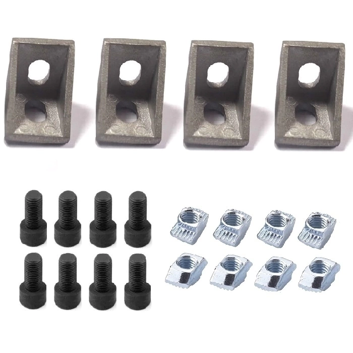 Kit de 4 escuadras de aluminio con ángulo a 90° para perfil Aluminio Bosch 2020, con tornillos M5x8mm y tuercas martillo tipo T M5._________________________________________Descripción del Producto en esta publicación:- 4 x Escuadra de aluminio con ángulo a 90° para perfil Aluminio Bosch 2020- Dimensiones: 20x20x17mm (para mas detalle ver diagrama)- 8 x Tornillo tipo Allen cabeza Tanque con rosca M5 por 8mm- 8 x Tuerca tipo martillo T con rosca M5