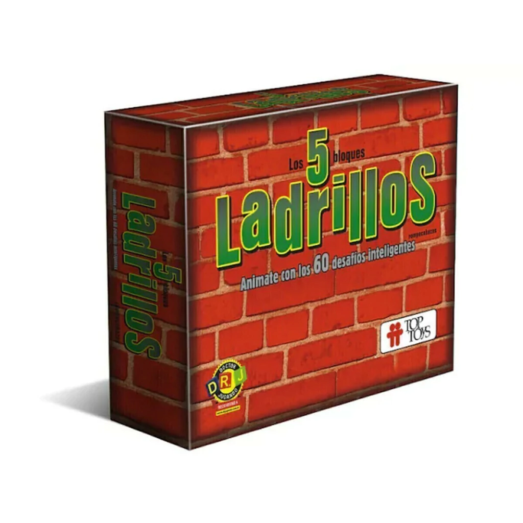 5 bloques de ladrillos plásticos, 60 cartas con desafíos, 1 bolsita contenedora. |