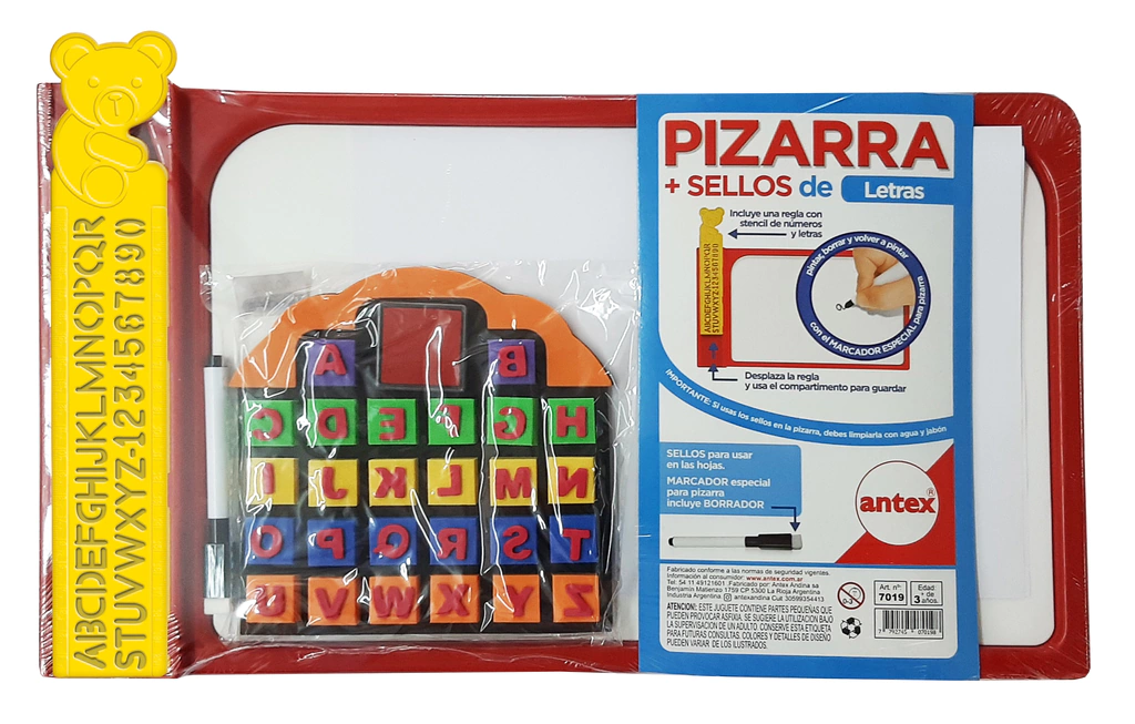 Pizarra con marcadores borrables y sellos para jugar en las hojas.Artículo: 7019Edad: +3 añosTamaño: 28 x 46 x 2 cmNro de jugadores: 1Forma de envió: Mercado envíos Forma de pago: Mercado Pago solo hacemos factura B - Consumidor Final.