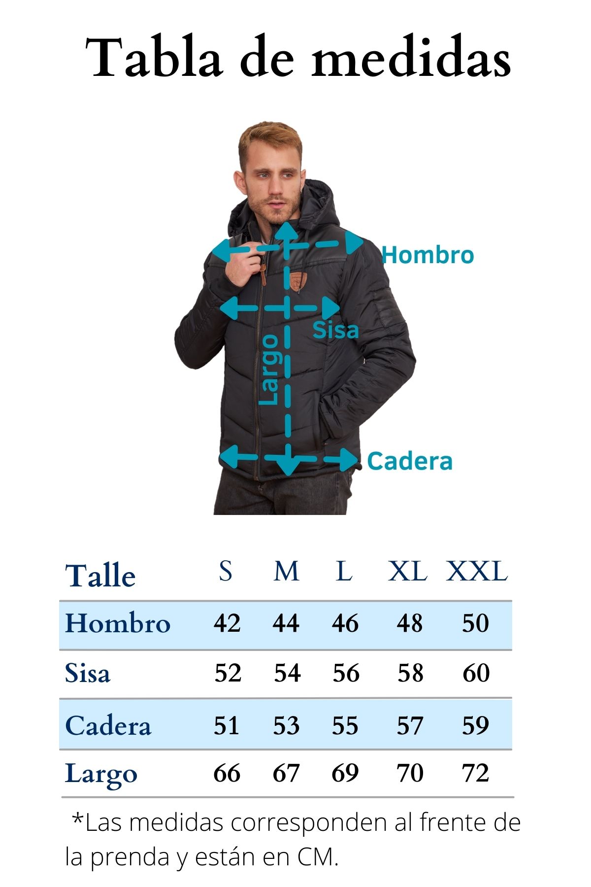 Art. 755 - Chaqueta de Abrigo, con cuerina en el frente y capucha desmontable. Confeccionada con Siré Opaco Impermeable, forrada con Tafeta y rellena con Guata.