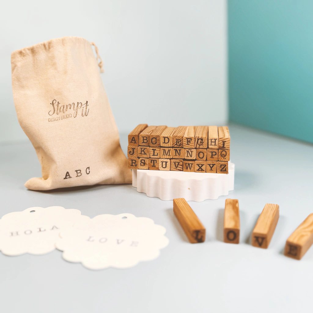 Descubrí nuestro increíble ABC maquina de escribir en madera, el abc perfecto para aprender y crear con estilo. Este set viene en una bolsita de lienzo y contiene las letras desde la A hasta la Z.