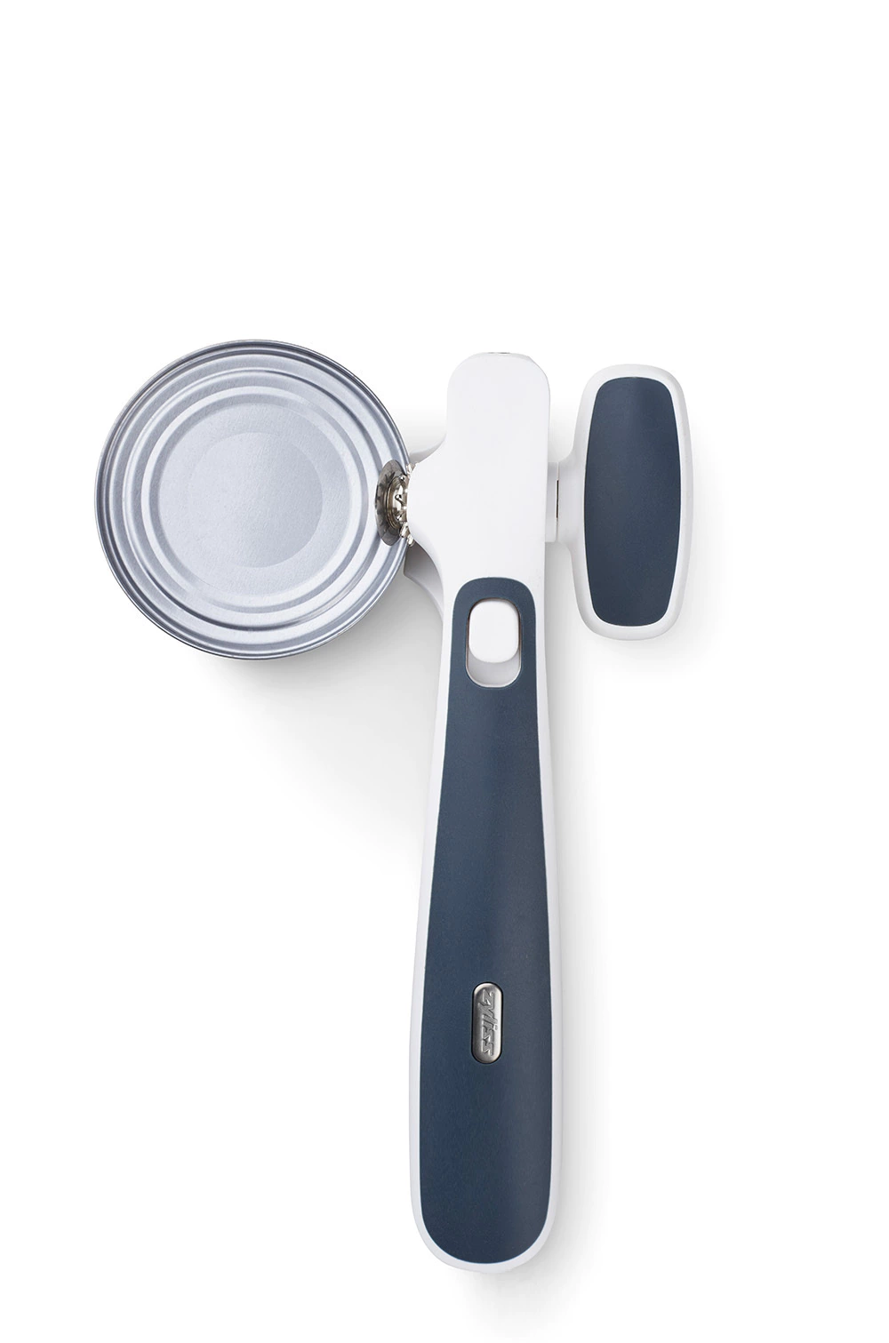 Abrelatas manual que se adapta a diferentes tamaños de latas. Mango cómodo con agarre de tacto suave. No deja bordes afilados y posee un mecanismo que mantiene las manijas trabadas para facilitar la apertura de las latas con menos esfuerzo.Medidas:- Alto: 4cm- Ancho: 7cm- Largo: 18,5cmMateriales: Acero Inoxidable / Plástico / SiliconaColores: Blanco y Azul GrafitoNo apto lavavajillasInstrucciones de cuidado:Para limpiar, use un paño húmedo y un paño limpio para secar. No sumergir en agua ni colocar en el lavavajillas.Origen: CHINADesde 1951, con sus orígenes en Suiza y luego trasladándose a Inglaterra, Zyliss crea productos para la cocina que cumplen con los deseos de consumidores de todo el mundo. Con más de 70 años de experiencia en diseño de productos de calidad para la preparación de comidas Zyliss se ha convertido en una marca internacionalmente reconocida y respetada por sus utensilios que son utilizados por cocineros profesionales.