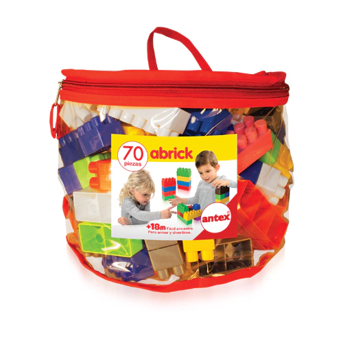 ABRICKBOLSA 70 PIEZASANTEXBolson con 70 ladrillos surtidosArtículo: 9056Edad: +18 mesesTamaño del bolson con bloques : 25 x 23 x 15 cm