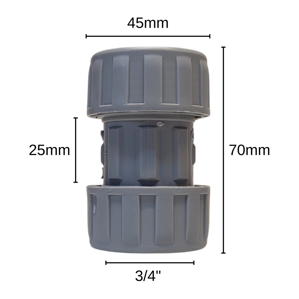 Características- Marca: DUKE.- Modelo: Profesional.- Acople Rápido de Compresión Profesional.- Diámetro 3/4 pulgada - Largo 8 cm.- Para reparar o conectar en forma rápida y sencilla todo tipo de caños.- Cuerpo: Polipropileno.- Sello: Termoplástico.- Apto Agua Fría y Caliente 80° C.- Incluye 2 arandelas cónicas blancas para Plomo.- Incluye 2 arandelas cónicas negras para Plástico.