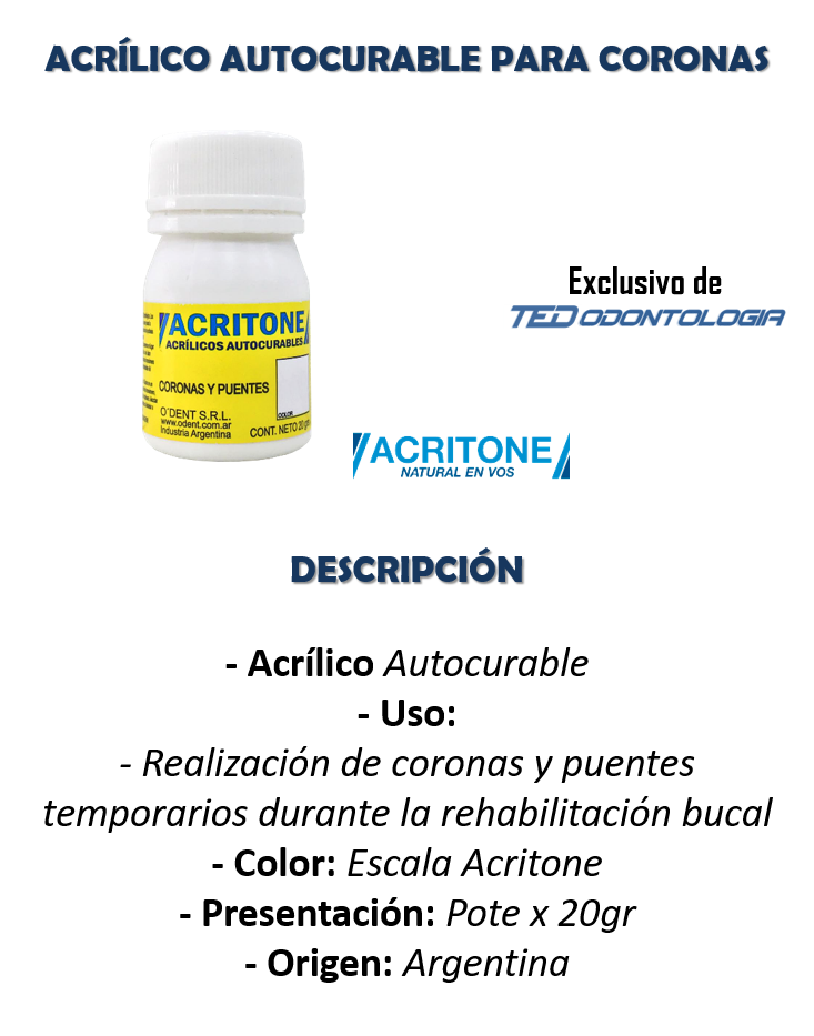 Acrílico Autocurable p/Coronas y Puentes x 20gr Acritone