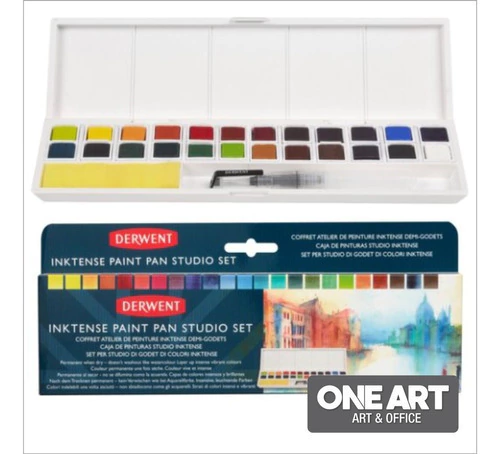 Las bandejas de pintura Derwent Inktense contienen la fórmula única Inktense que se encuentra en nuestras gamas de lápices y bloques. A diferencia de la acuarela tradicional, se pueden aplicar lavados de pintura vívida sin disolver las capas previamente secas. El juego Derwent Inktense Paint Pan Studio tiene la fórmula única Inktense que se encuentra en nuestras gamas de lápices y bloques. A diferencia de la acuarela tradicional, se pueden aplicar lavados de pintura vívida sin disolver las capas previamente secas. Ideal para usar en un estudio, este juego contiene 24 bandejas de pintura Inktense altamente resistentes a la luz, un cepillo de agua, una esponja y una paleta de mezcla de cinco pocillos extraíble. Inktense es adecuado para su uso en papel, tela y otras superficies para una amplia gama de proyectos de arte y manualidades. La combinación perfecta de 24 colores tradicionales y brillantes con tinta negra y blanca.