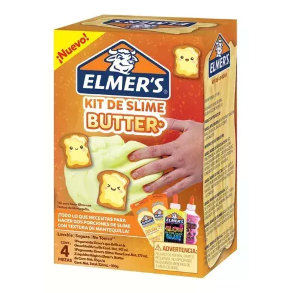 DescripciónKIT SLIME ELMERS BUTTERKit para hacer slime con textura a mantequilla.Lavable | seguro | no toxico.Incluye 4 piezas:- 1 pegamento elmers que brilla en la oscuridad- 1 pegamento elmers glitter- 2 liquidos magicos butter.