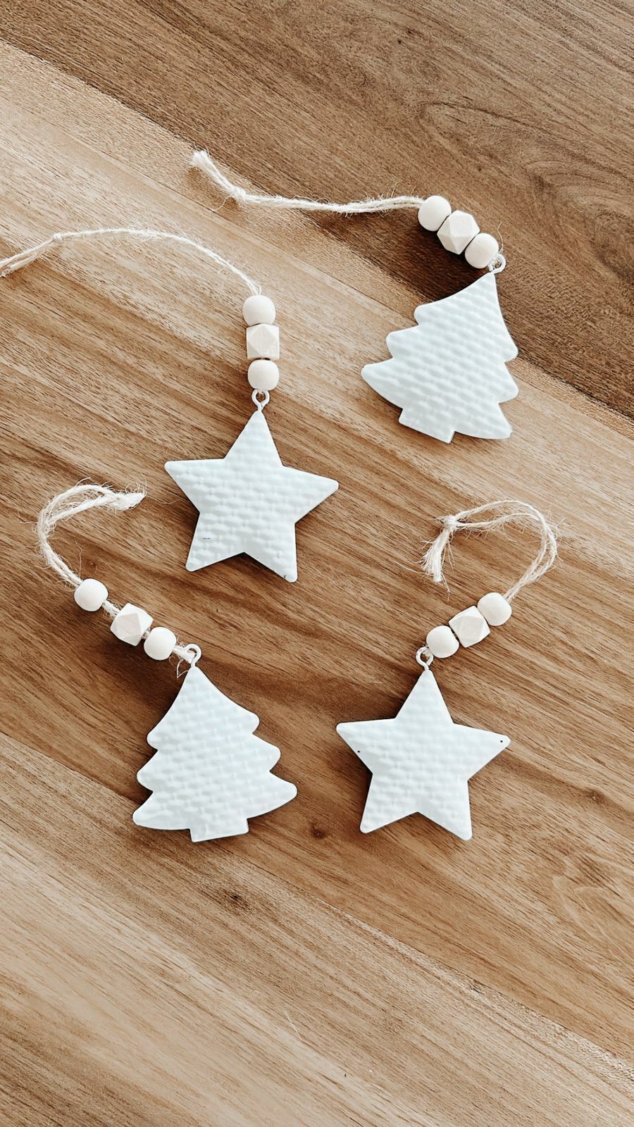 Adorno navidad colgante. Varios usos. Incluye 1 estrella y 1 pino. Medidas estrella: 6,5x6,5. Medidas Pino: 6,5x6,5 cm