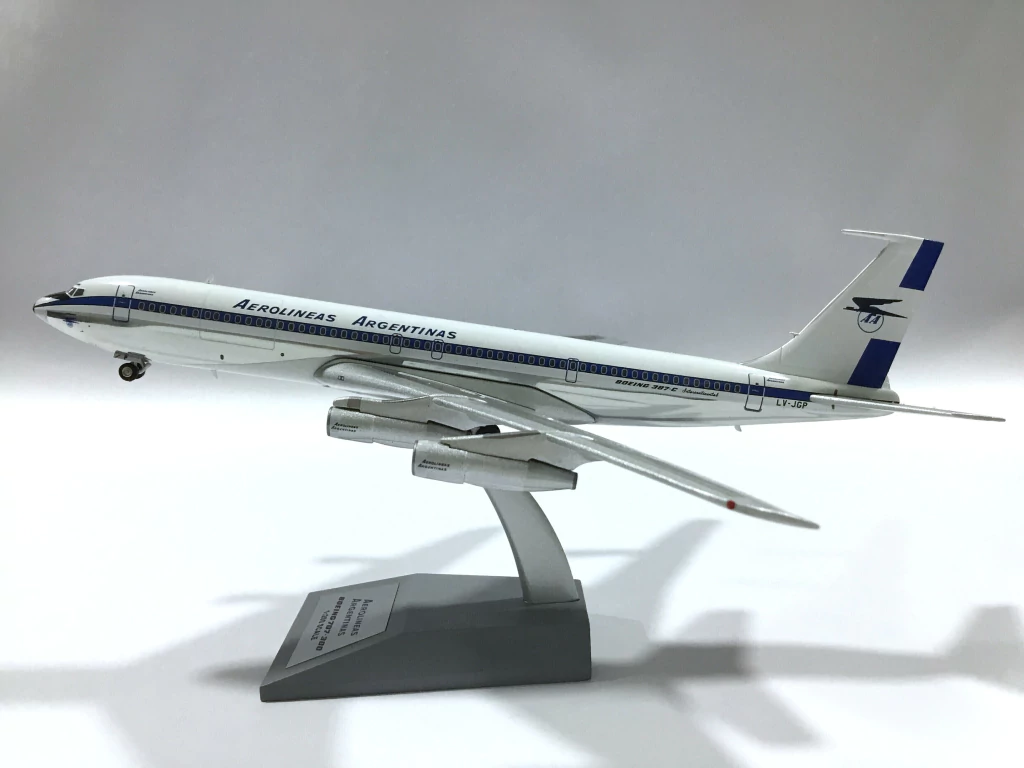 Avion: Boeing 707-300Compañía: Aerolineas ArgentinasMatricula: LV-JGPNombre: AchernarMarca: Retro Models (Inflight200)Material: Metal (Diecast)Escala: 1:200Largo de Fuselaje: 23 cm.Envergadura de Alas: 22 cm.Producto ExclusivoSomos representantes oficiales de Retro Models para la Republica Argentina.Aviones a escala de modelismo estatico, replicas exactas nivel premium, todos de metal y pintados, con los detalles de las ruedas de caucho, mas antenas.IMPORTANTE: La garantia cubre daños de fabrica, todos los aviones son revisados exhaustivamente antes de ser publicados.Cuide su pieza!!, es un elemento de coleccion, no un juguete!!!!.Mantenga alejado de los niños, tiene elementos punzantes, apto +14