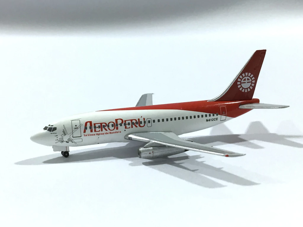 Avion: Boeing 737-200Compañía: AeroperuMatricula: N412CEMarca: AeroclassicsMaterial: Metal (Diecast)Escala: 1:400Largo de Fuselaje: 7.5 cm.Envergadura de Alas: 7 cm.Producto ExclusivoSomos representantes oficiales de Aeroclassics para la Republica Argentina.Aviones a escala de modelismo estatico, replicas exactas nivel premium, todos de metal y pintados, con los detalles de las ruedas de caucho, mas antenas.IMPORTANTE: La garantia cubre daños de fabrica, todos los aviones son revisados exhaustivamente antes de ser publicados. Cuide su pieza!!, es un elemento de coleccion, no es un juguete!!!!.Mantenga alejado de los niños, tiene elementos punzantes, apto +14