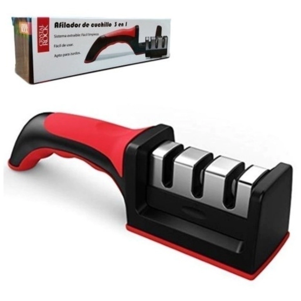 El afilado de cuchillos con un afilador manual tiene lugar en tres etapas.