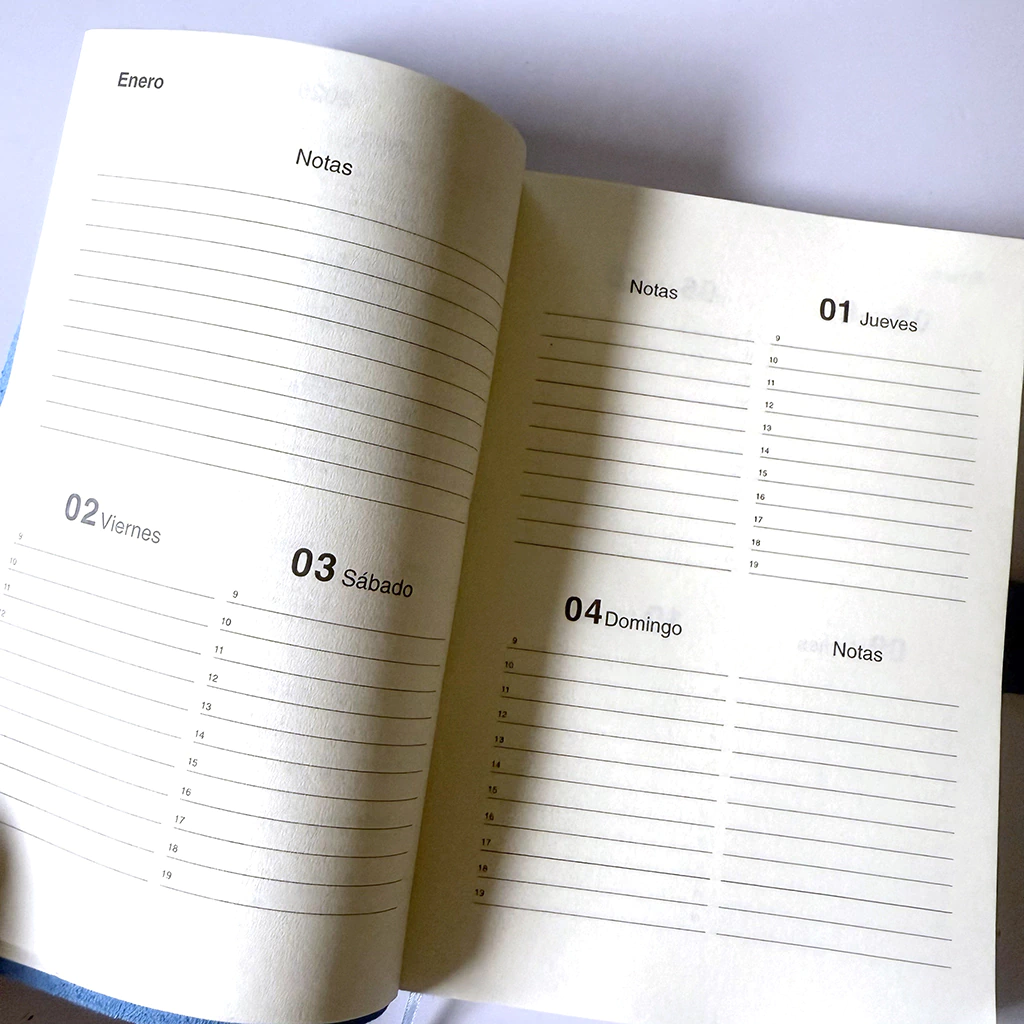 Planificá tus días con la agenda 2025 de la línea gamuzaTamaño 14x21 cmHorarios semana a la vista, hojas bookcelConsultar colores disponiblesLos grabados son en hot stamping dorado, plateado o bajo relieve