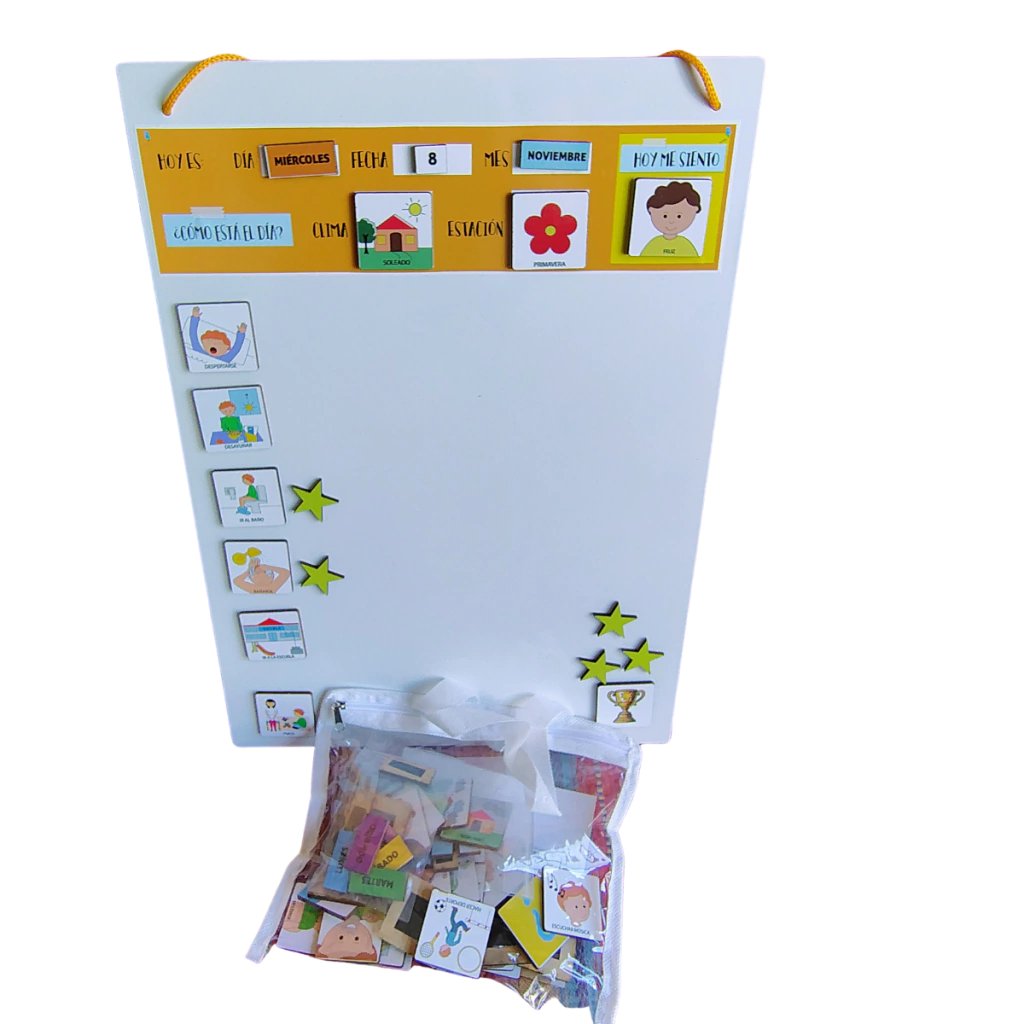 Consta del panel metálico y de 39 fichas imantadas con rutinas diarias como: