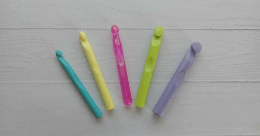 Agujas de crochet plásticas de colores, por unidad o por juego completo. Los colores se envían al azar, pueden variar al de la imagen.