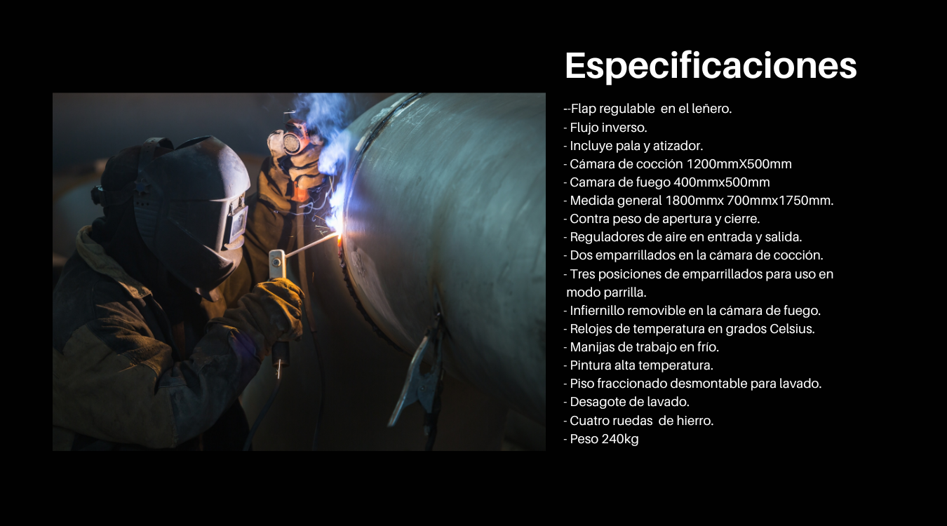 - Dos emparrillados en la camara de coccion de 1080mm x 460mm y 1080mm x 400mm.