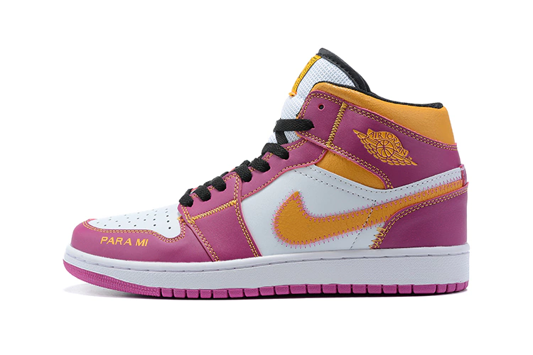 La marca Jordan creó las Air Jordan 1 Mid Día de los Muertos para rendir homenaje a la famosa festividad mexicana, el Día de los Muertos. El diseño utiliza el color y los patrones gráficos para rendir homenaje a las costumbres mexicanas.Las Air Jordan 1 Mid Dia de los Muertos hacen referencia a las flores tradicionales que crecen por todo México. La zapatilla presenta una paleta de tres colores: amarillo, fucsia y blanco. A ambos lados de la zapatilla se encuentra el clásico logotipo Swoosh de Nike. El logotipo, sin embargo, está acentuado por costuras texturizadas que dan a estas zapatillas un aspecto único. En la puntera, el texto "Para Mi", o "For Me" en inglés, está impreso en amarillo. La entresuela blanca y la suela fucsia completan el diseño.