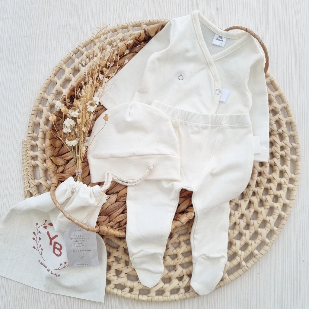 AJUAR 3 PIEZASNuestros ajuares están confeccionadas en algodón con lycra excelente calidad, súper suave y elastizada.INCLUYE:Batita cruzada con dos broches.Medio osito.Gorrito redondoPresentación en bolsita de Tusor con tarjetitaVienen en dos tallesRecien Nacido ( o a 1 mes) hasta 4,5 kg apróx3 meses ( 1 a 3 meses ) hasta  6kg apróxMEDIDASRECIÉN NACIDO :BatitaLargo 23cm  Ancho 19cmMedio OsitoLargo hasta el talón 29cm Tiro 16cm ancho 17cmGorritoAncho 16cm3 MESES :BatitaLargo 26cm Ancho 21cmMedio OsitoLargo hasta el talón 32cm Tiro 17cm ancho 18cmGorritoAncho 18cmSon ideales para los primeros meses de vida del bebé, súper practicos para el cambio de pañal.Un regalo precioso para hacer a esa personita tan especial que viene en camino.Las primeras prendas que acompañaran a tu bebé.Volver arriba