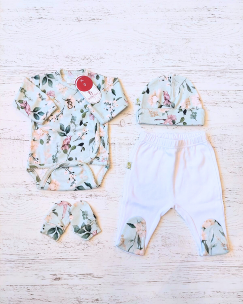 Ajuar de 4 piezas en algodón pima de "Brotecitos"¡Confort y suavidad para tu bebé!Brotecitos con este set lo que ofrece es un hermoso pack de recibimiento, práctico y con las prendas necesarias para completar los cambios de ropa para su primer semana en el hospital!Este conjunto incluye:1) Body Cruzado: se abre por completo, con cierre de botones y diseño práctico para facilitar el cambio de pañal.2) Ranita: con elástico interno en la cintura, generando un calceperfecto y cómodo.3) Gorro: con ajuste suave para mantener la cabecita de tu bebé abrigada.4) Mitones: protegen las manitos del frío y evita que se rasguñe.Cada piezas está elaborada con algodón pima de la más alta calidad, conocido por su suavidad y durabilidd; sumando el detalle del picot y la atención en los detalles de cada prenda, es lo que hace de este ajuar una opción excelente para cualquier ocasión.¡Ideal para regalar!Si querés sumarle prenditas de la línea "Brotecitos" ¡una muy buena opcíon son las camperitas!Una guía:Media estación: camperita de algodón simple.Invierno: camperita de plush o matelasse.Verano: camperita de panal.¡No te pierdas la oportunidad de ofrecerle a tu bebé el mejor confort y estilo co este precioso ajuar!Cuidados de la prenda:1) Lavar con agua fría.2) Utilizar jabón neutro.3) No usar lavandina.4) Siempre plancha tibia.