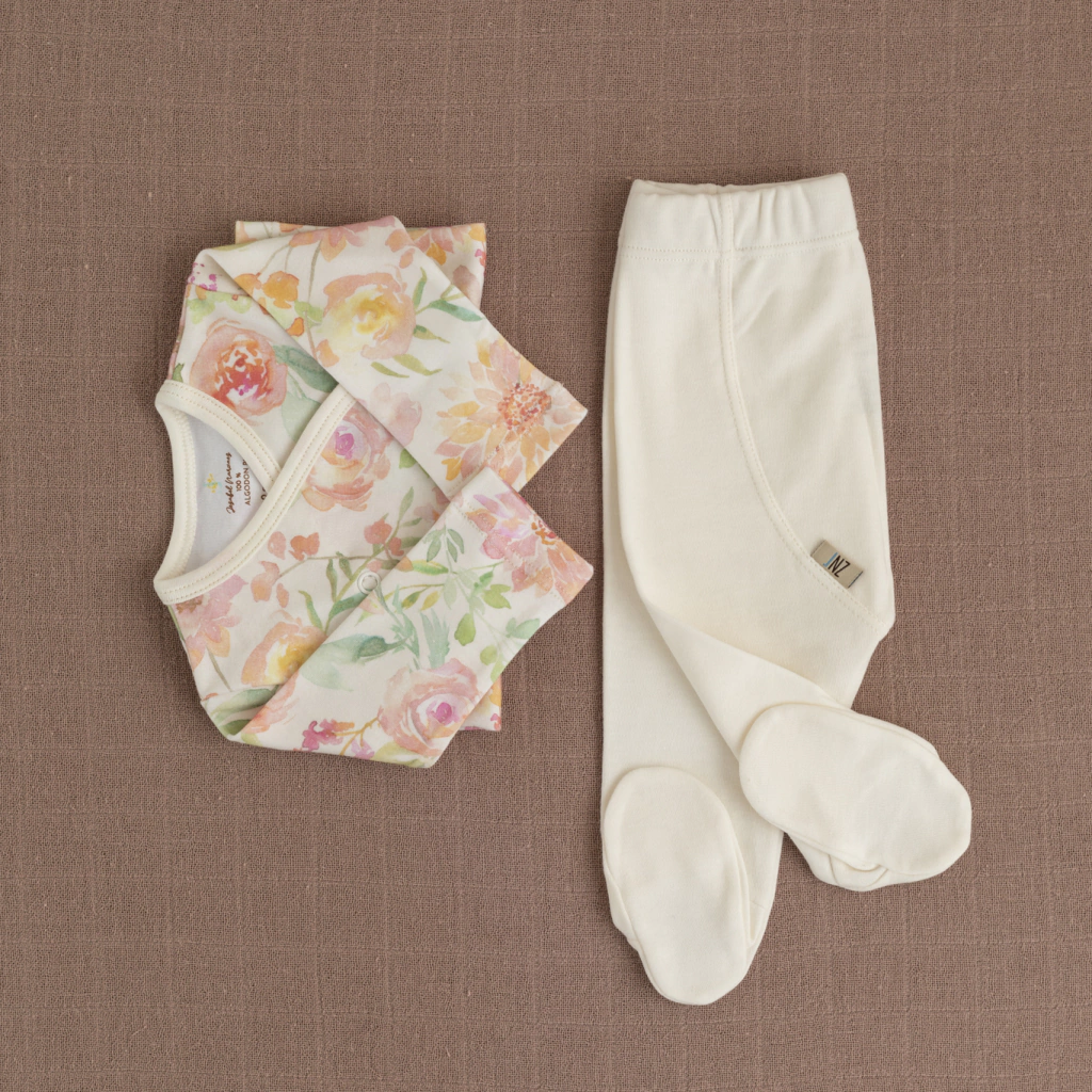 Ajuar Helena100% algodón pimaEl ajuar contiene:1.-Una batita mangas largas estampado floral en tonos coral, cruzada al frente con cierre de broches metálicos2.-Una ranita corte pañalero natural lisaAclaración:en el precio no está ningún accesorio de la fotoMedidas de las Batitas00 recomendado para bebes de entre 2,500 y 3 kilos de pesoAncho: 18cmLargo: 24 cmsManga: 15 cms0 a 1 mes (RN)Ancho: 20cmLargo: 25 cmsManga: 16 cms1 a 3 mesesAncho: 23cmLargo: 26 cmsManga: 18 cmsMedida de las Ranitas00Cintura: 16cmLargo total de la ranita con el pie armado: 27cm0 a 1 mes (RN)Cintura: 18cmLargo total de la ranita con el pie armado: 30cm1 a 3 mesesCintura: 20cmLargo total de la ranita con el pie armado: 33cmPueden existir diferencias en las medidas de las prendas ya que su proceso de confección es totalmente realizado a manoSugerencias para el lavado- lavar a mano con agua fría colocando la prenda del lado del revés- usar jabón neutro o recomendados para bebés- secar a la sombraProducto hecho en Argentina