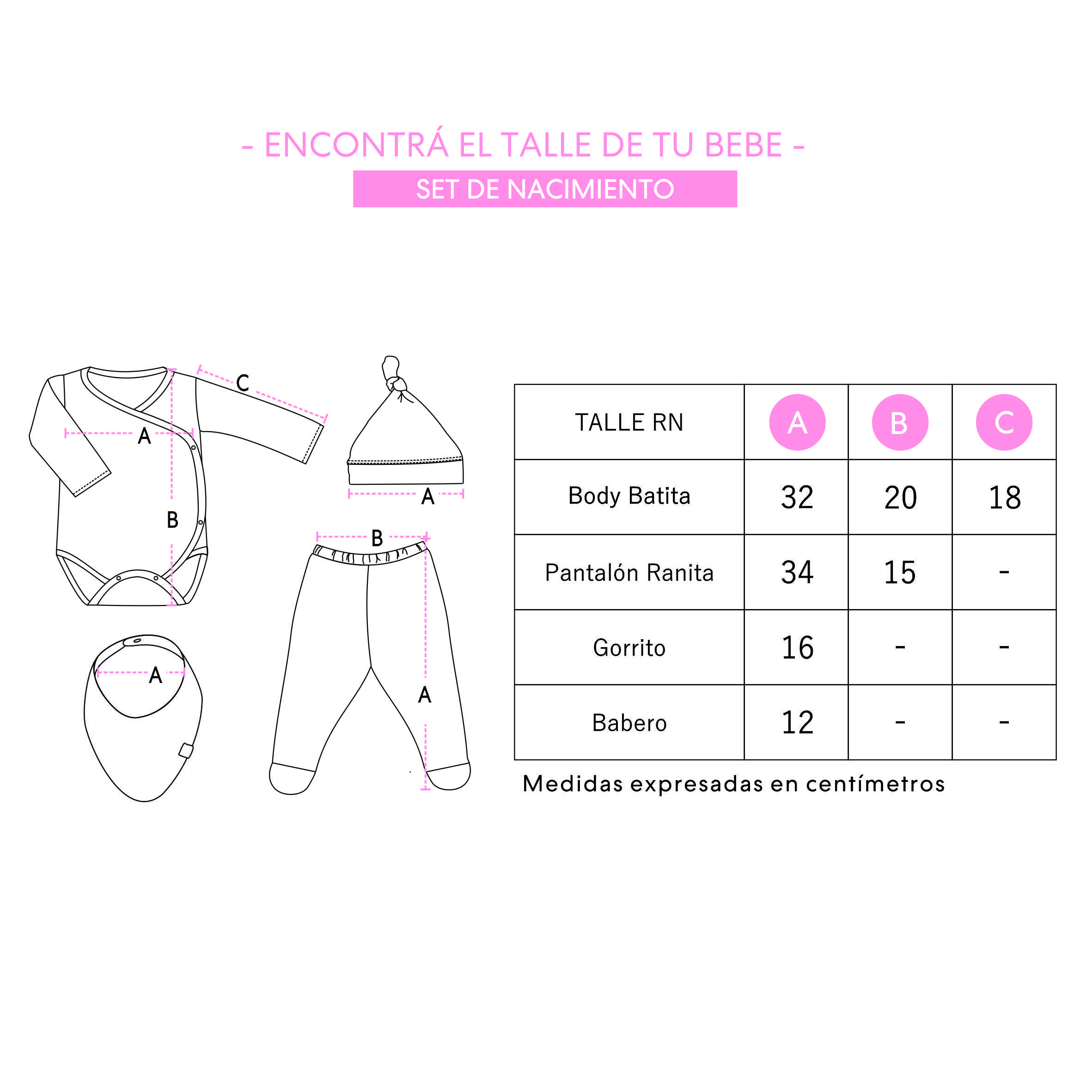 - Talle único: Nuestro set viene en Talle RN. Aprox. 3-4 kilos.