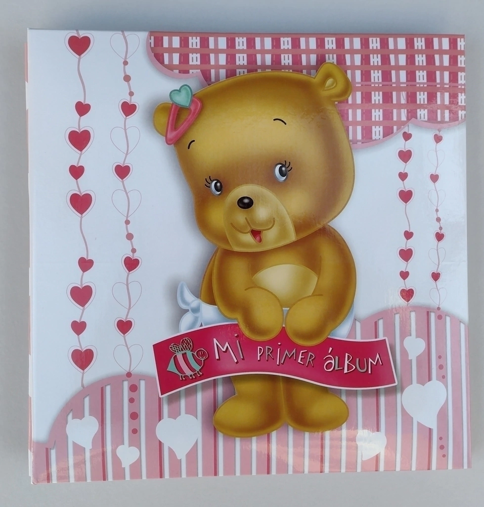 - Album con 6 hojas autoadhesivas mas 6 páginas ilustradas para completar con los datos del bebe.