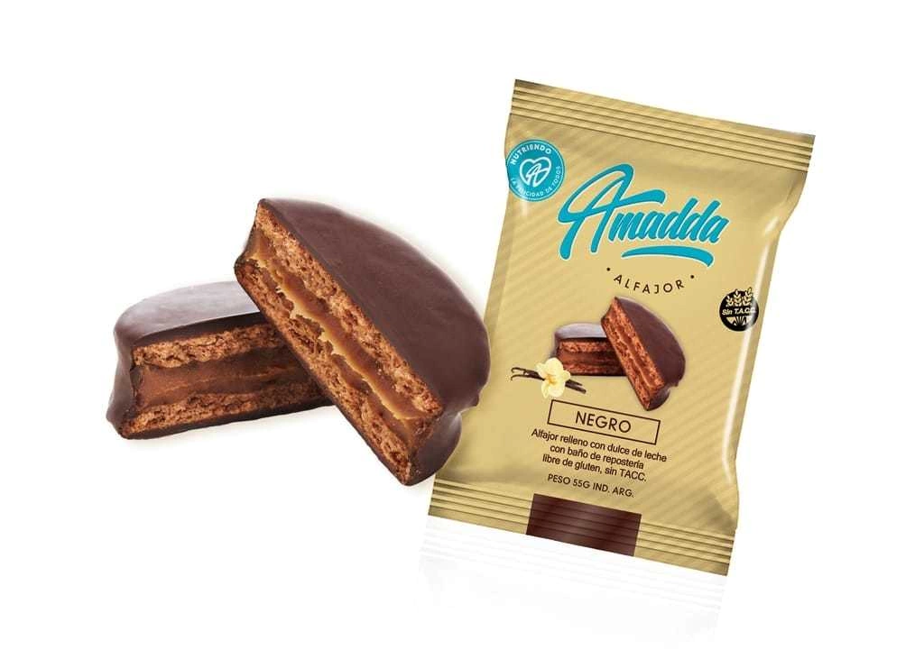 Alfajor Relleno Con Dulce De Leche Con Baño De Reposteria Negro - 55 Gr - Amadda