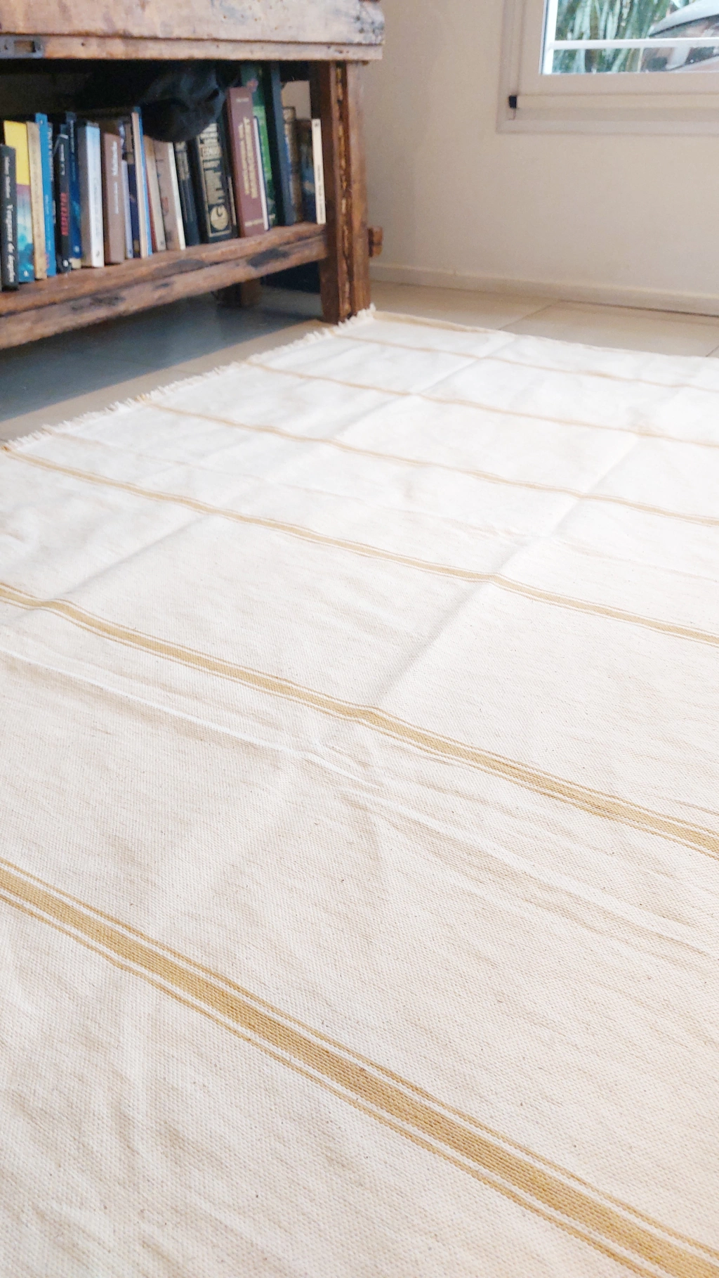 Alfombra liviana de algodón, crudo con rayas triples negras.