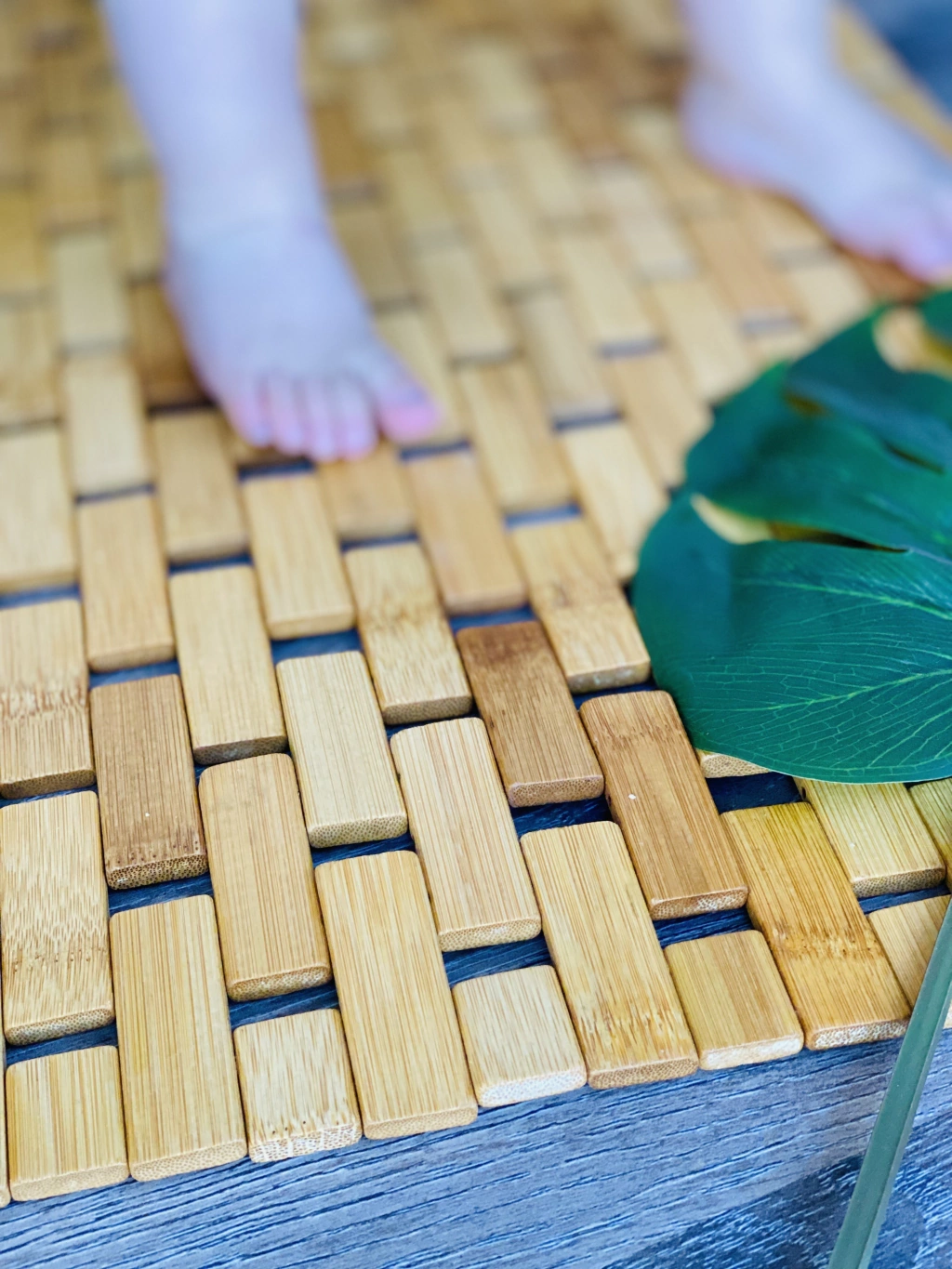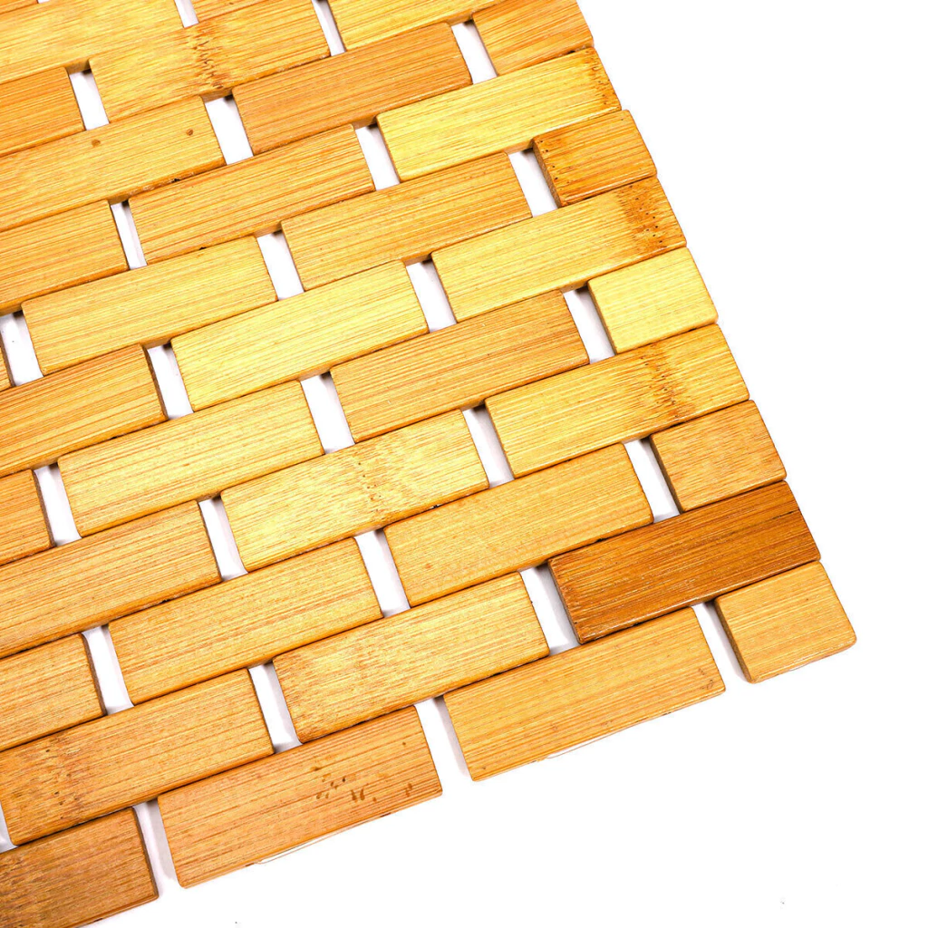 Alfombra fabricada en 100% bambú natural ecológico, diseñada para ser flexible y fácil de manejar. Cuenta con una base antideslizante que brinda mayor seguridad y resistencia a la humedad, ideal para el baño. Medidas 60x40x0,8cm.