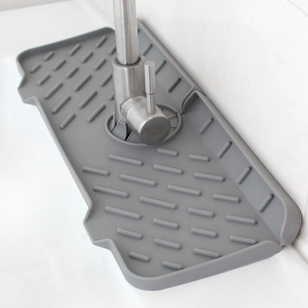 Diseñada para adaptarse a la base de la canilla, esta alfombra ayuda a recoger el exceso de agua, evitando charcos y manteniendo las superficies secas.