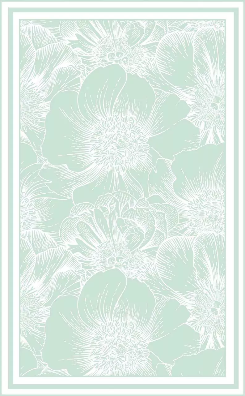 ALFOMBRA VINILICA VERDE AGUA FLORES BLANCAS 60X98 CM