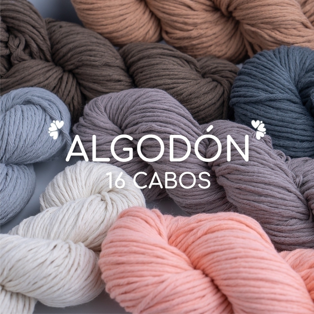 Multi Cotton de 16 cabos. Grueso, ideal para macramé. Para aguja 9mm aprox. Se presenta en madejas de 150gr aprox.