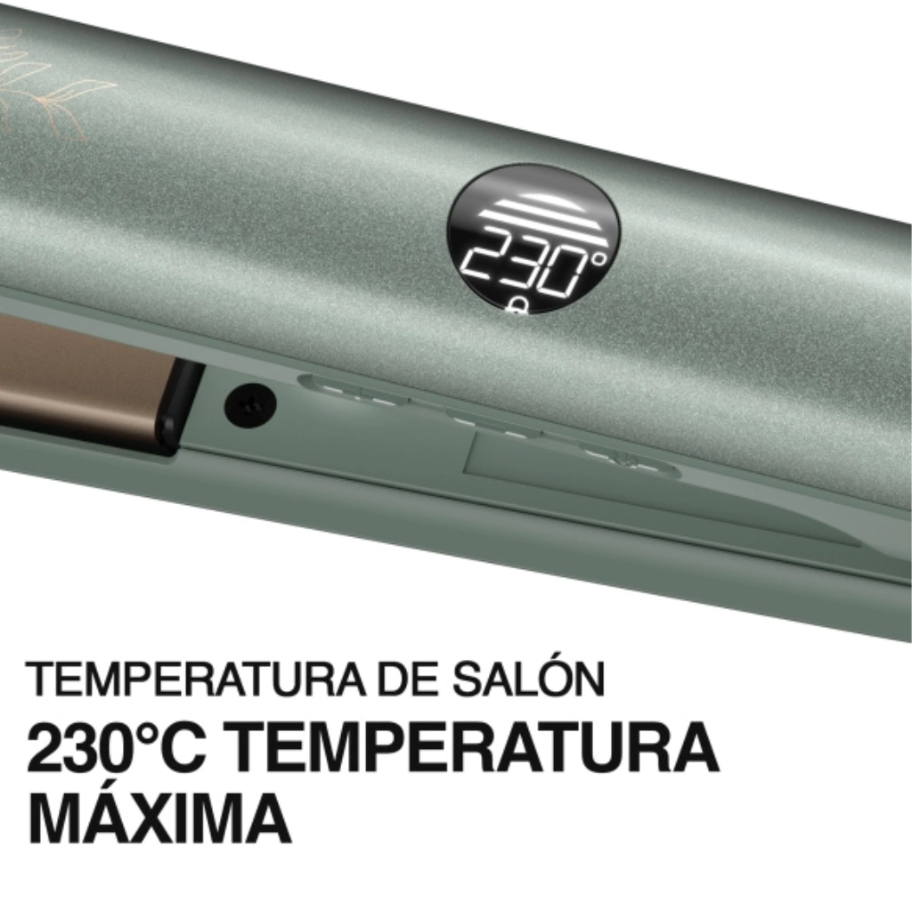 La plancha alisadora Remington Botanicals™ aprovecha los elementos que se encuentran en la naturaleza. Sus placas recubiertas de microacondicionador cerámico avanzado, enriquecido con extracto de aloe vera, jojoba y rosa mosqueta, brindan un cabello liso, protegido y saludable. La plancha cuenta con nuestro suave ajuste de temperatura BotaniCare que ayuda a proteger tu cabello al alisarlo a una temperatura más baja, de 185 °C . Además, cuenta con controles digitales de temperatura con 10 ajustes hasta 230 °C para que puedas encontrar el nivel de calor perfecto para tu tipo de cabello. (*vs. recubrimiento cerámico estándar de Remington).