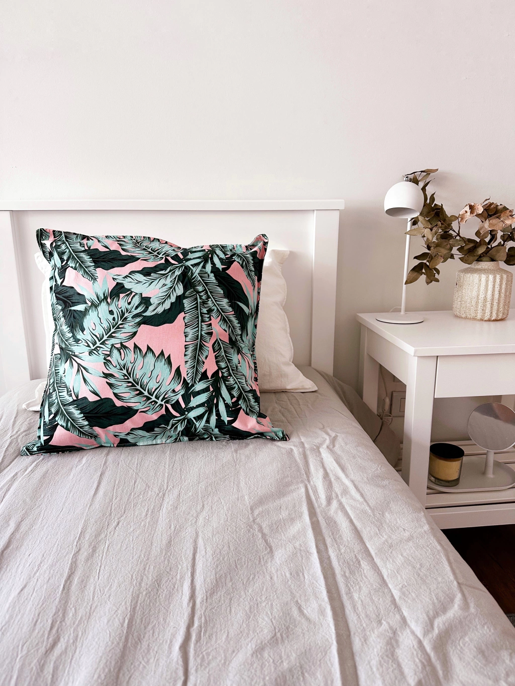 Funda apta lavarropas. Secar del reverso, es recomendable que no le de el sol directo a la hora del secado para que no destiña el color.