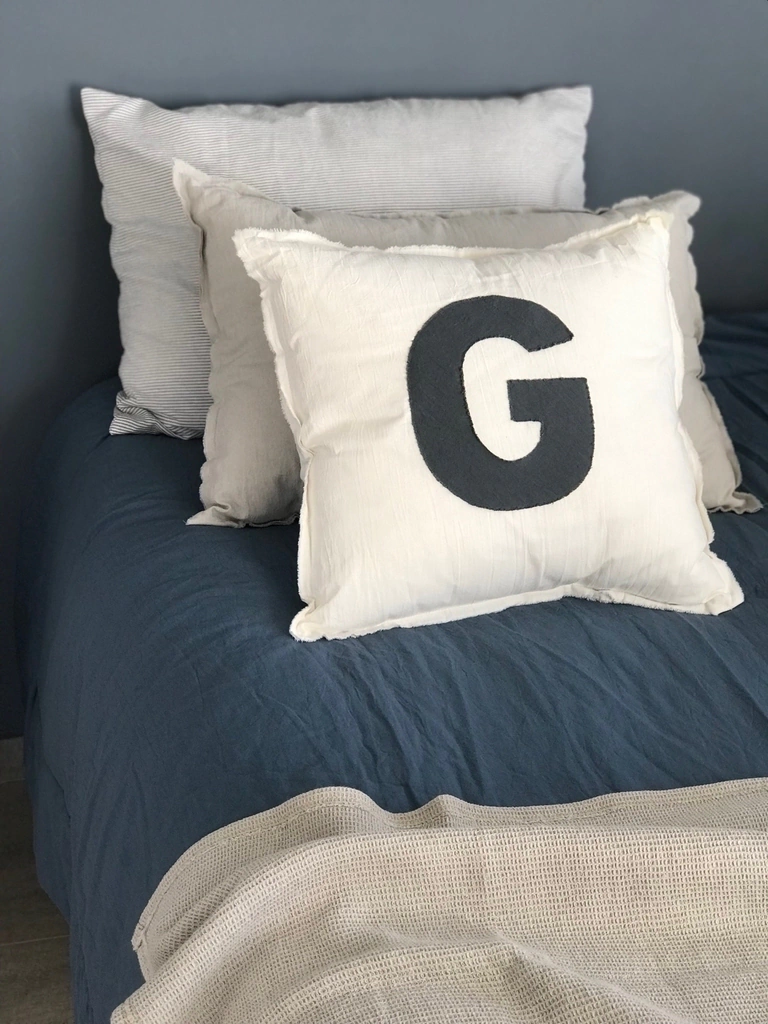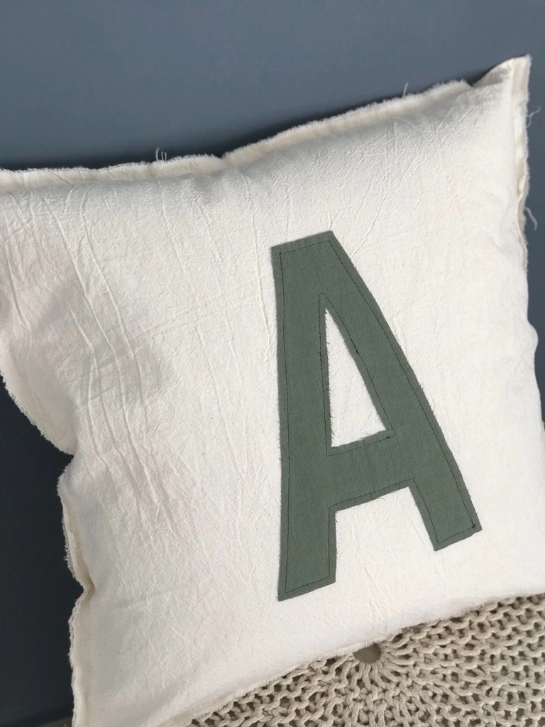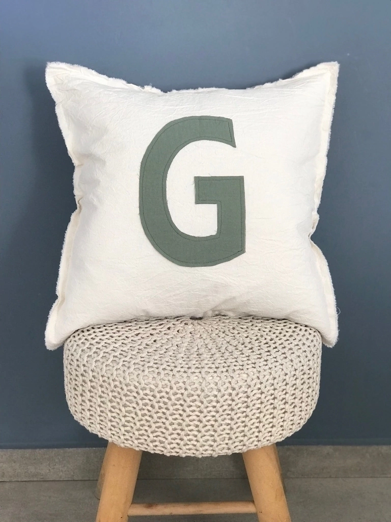 Almohadón en tusor 100% algodon color crudo, con inicial en color a elección y relleno con vellón siliconado.Medidas: - 40cm x 40cm- 50cm x 50cmFunda lavable en lavarropas, se recomienda con agua fría y centrifugado suave.Asegurate de aclararnos la letra y el color de la misma en la casilla de aclaraciones al finalizar tu compra o escribinos por Instagram o Whatsapp.Colores: blanco, arena, gris perla, rosa viejo, aqua (celeste), verde seco, azul acero, gris elefante y gris cemento.Si querés alguna combinación especial, escribinos que lo hacemos!!