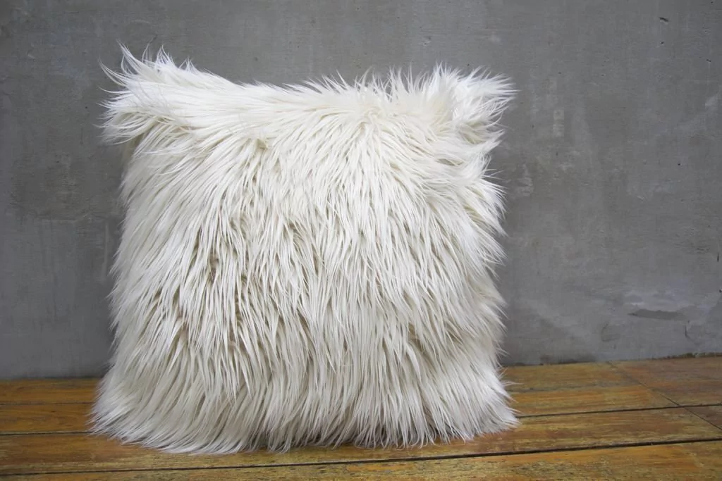 Almohadón de pelo sintético en tono crudo con cierre. Revés en pana a tono.Interior: funda rellena de vellón siliconadoMedidas: 50x50 cm* Funda apta lavarropas lavado delicado con agua fría.