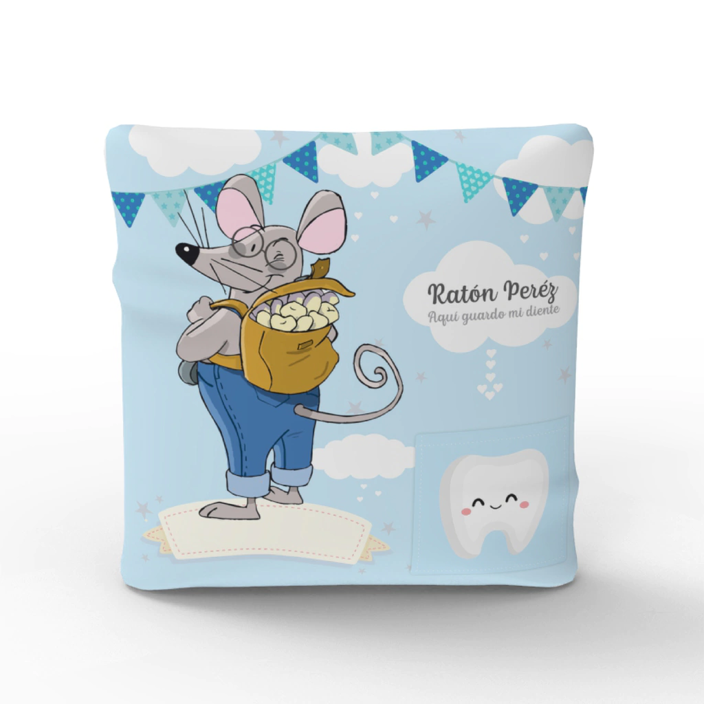 Almohadón con bolsillo para guardar el diente caído por la noche. Medida 20x20 cm Con espacio para escribir el nombre. Lavable.