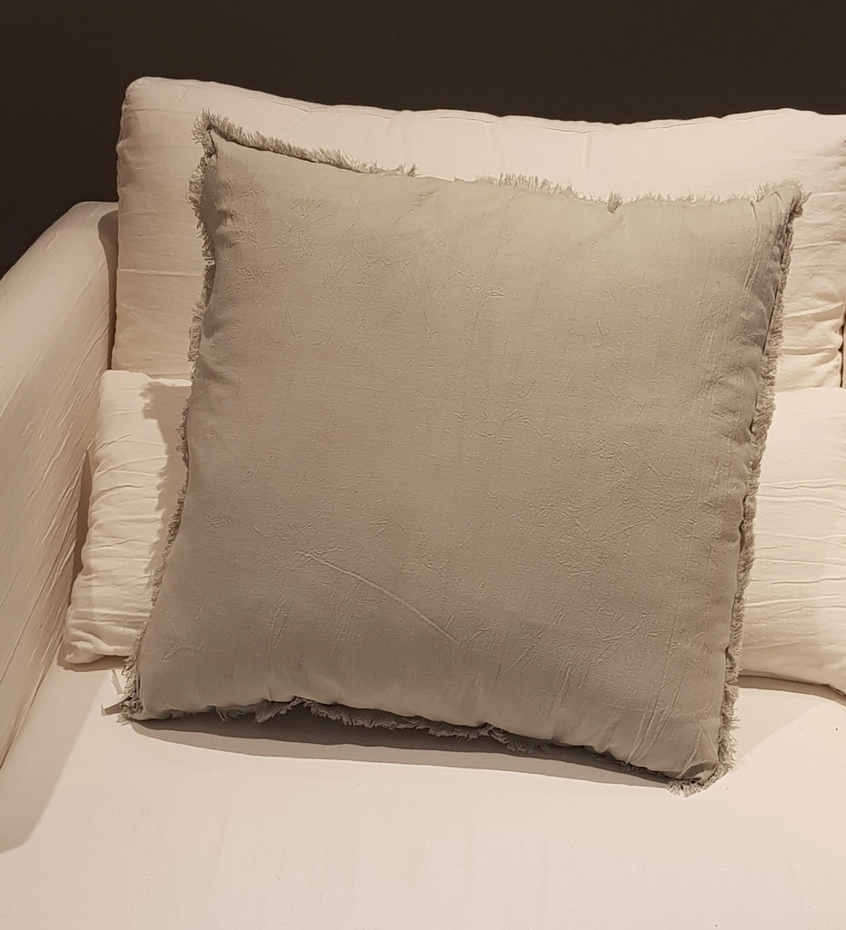 Almohadón Tusor Flecos Med: 55x55 cm Gris Perla