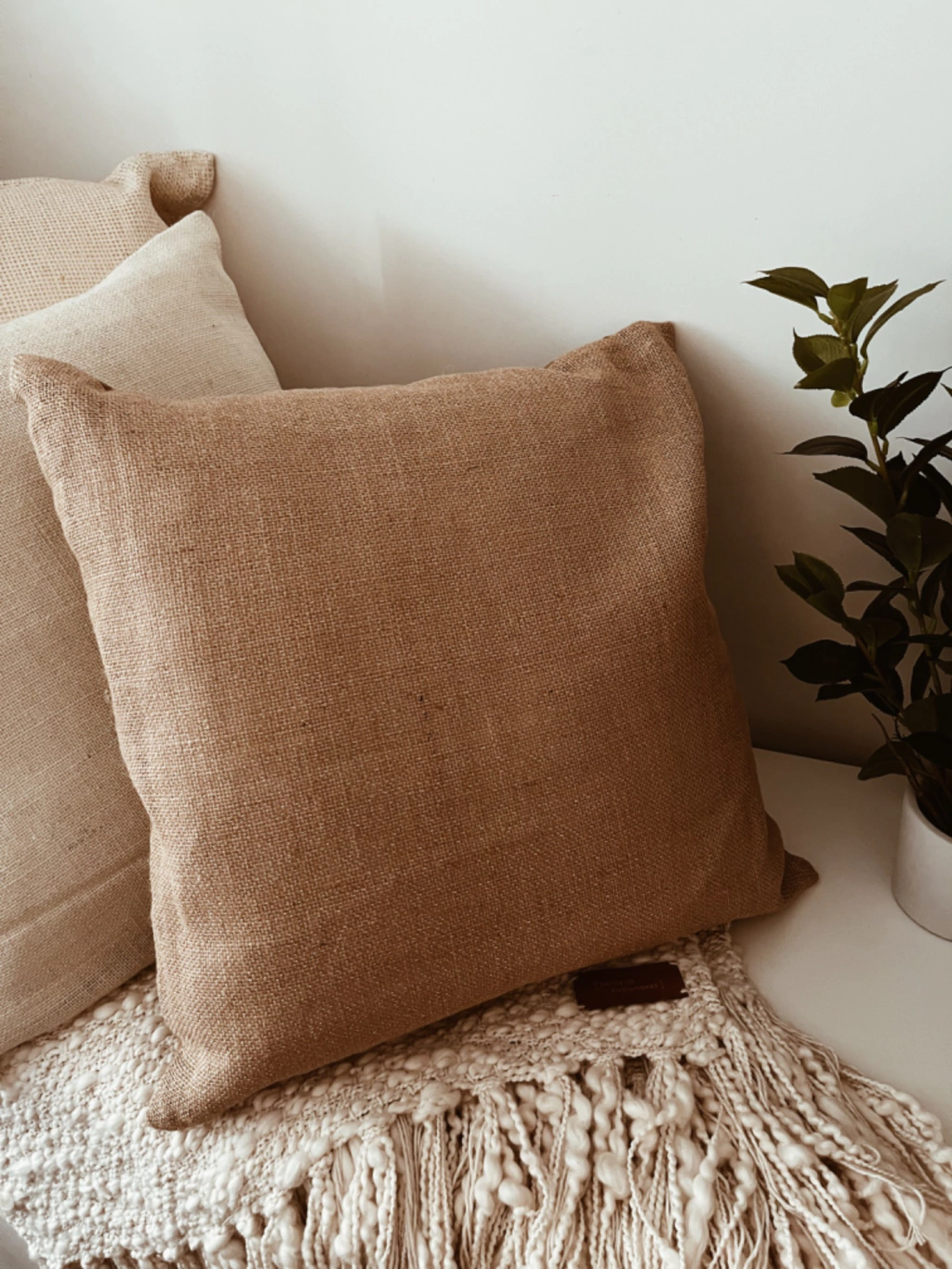 Almohadón con frente de tela yute con hilos en color plata. Espalda de tussorMedidas: 50cm x 50cmIncluye relleno de vellon siliconado. Funda desmontable con cierre