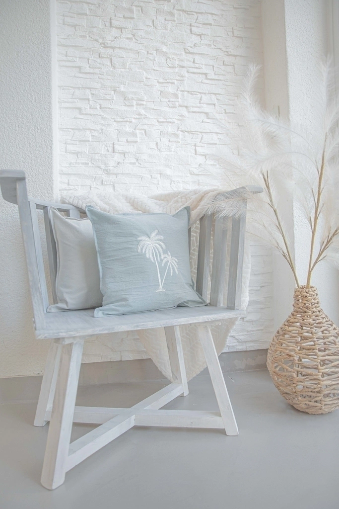 Almohadón de lienzo con palmera. Incluye relleno.