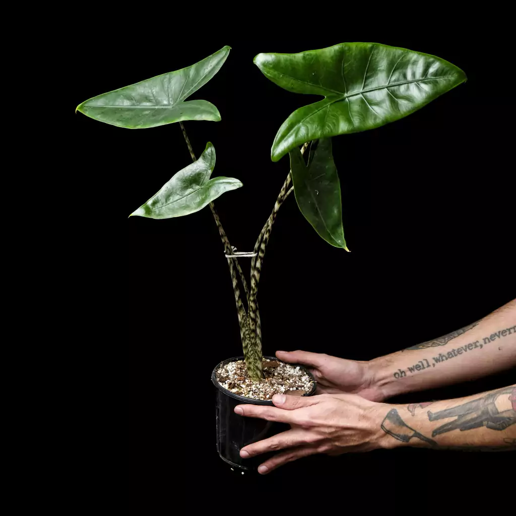 Lo más hermoso y llamativo de esta especie, es el diseño "cebra" que presenta a lo largo de sus pecíolos y que es lo que le da el nombre al fin y al cabo. Pero no es menos atractivo, el follaje de esta plantuli; hojas verdes, angulosas, en forma de flecha que pueden llegar a un tamaño enorme! Divina por donde se la mire!