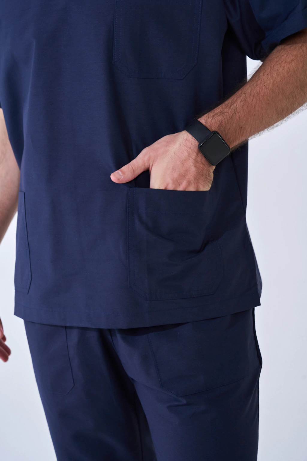 Clásico conjunto unisex con escote en V. Su tela es mezcla inversa (70% Algodón y 30% Poliéster). Viene en color azul marino, ideal para combinar con todo. La chaqueta tiene dos bolsillos inferiores y uno a la altura del pecho. El pantalón es estilo náutico, con cintura elastizada. Tiene dos bolsillos delanteros y uno trasero. Este ambo es parte de la marca Primera Línea, con quienes trabajamos hace muchos años, marca que Saber garantiza su calidad.
