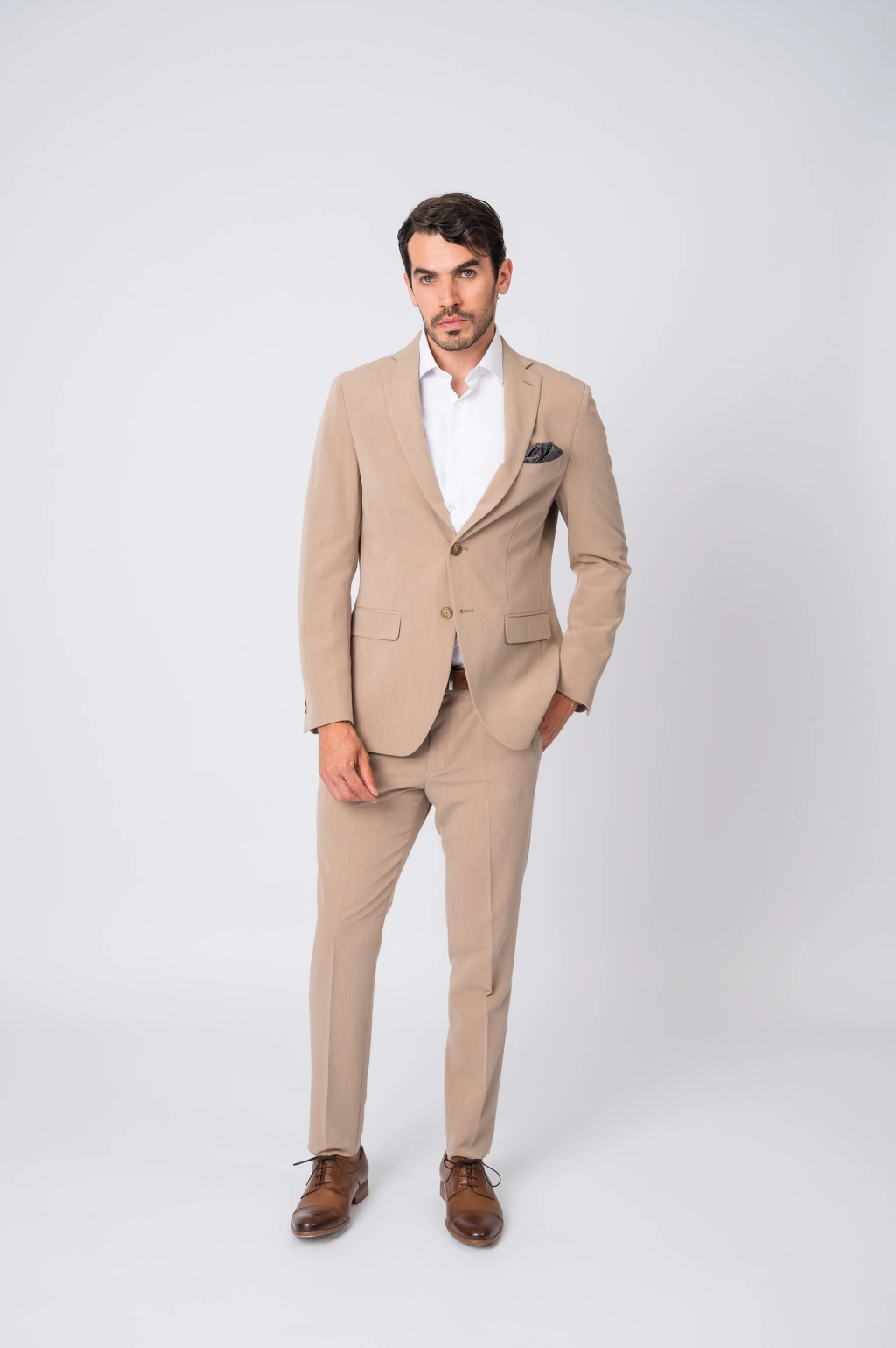 Descripción: Ambo en tela lisa. Saco con solapa en punta, 2 botones, abertura simple. Pantalon de vestir con bolsillos con botones traseros. Es ideal para una ocasion especial en donde quieras lucir elegante con prendas de calidad.