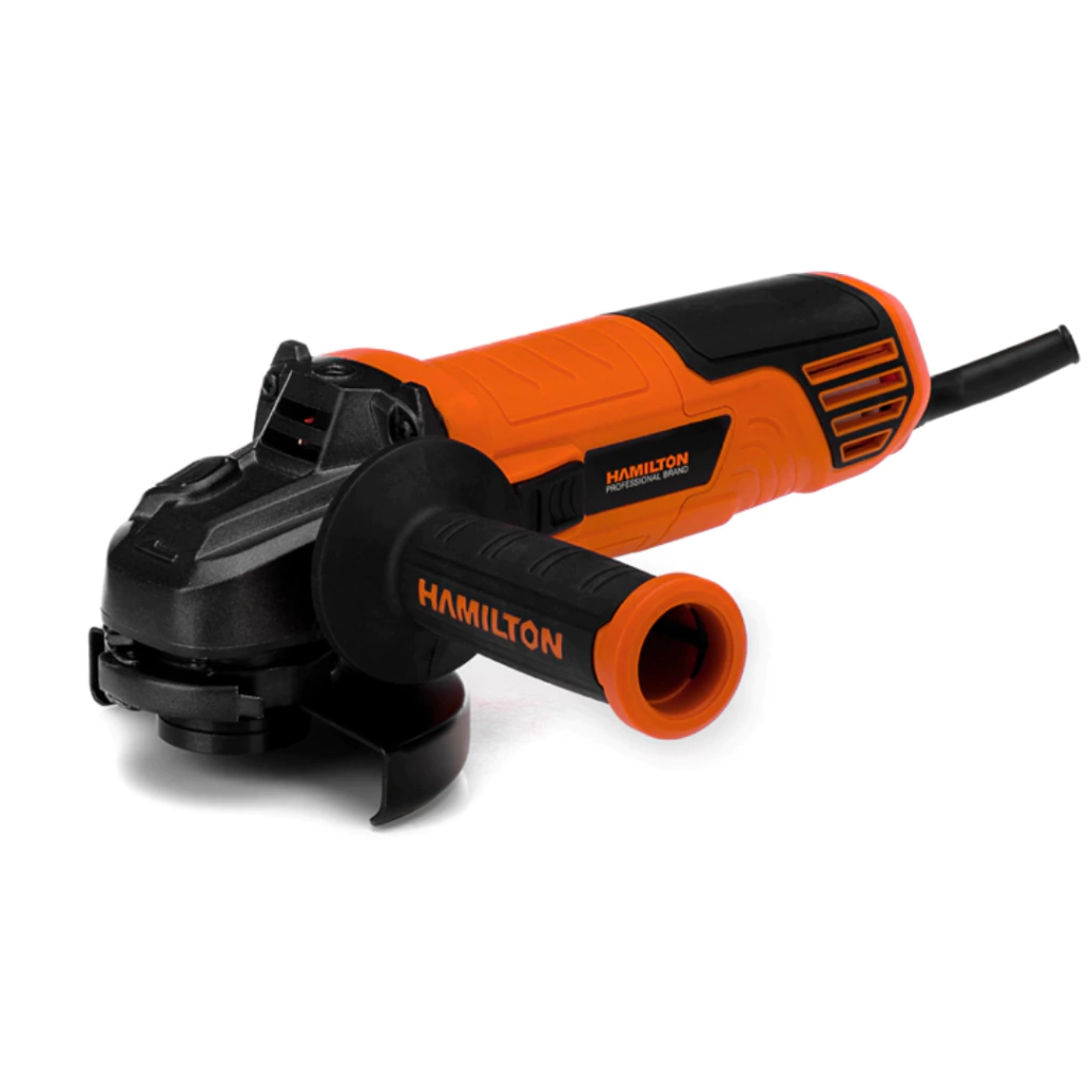 Amoladora Hamilton 115mm 900w HAA002Motor eléctrico brushed de alta performance– Tensión nominal: 220V – 240V– Frecuencia: 50/60 Hz– Potencia: 900W– Velocidad sin carga: 12.000 RPM– Discos: 115 mm.– Interruptor On-OFF con traba de seguridad– Caja metálica– Cabezal de aluminio reforzado– Sistema de bloqueo rápido para cambio de discos– Mango antideslizante– Accesorios incluidos:Mango auxiliarLlave extractoraProtector metálico con cierre rápidoGarantía: Global y limitada: 2 añosSKU: HAA002