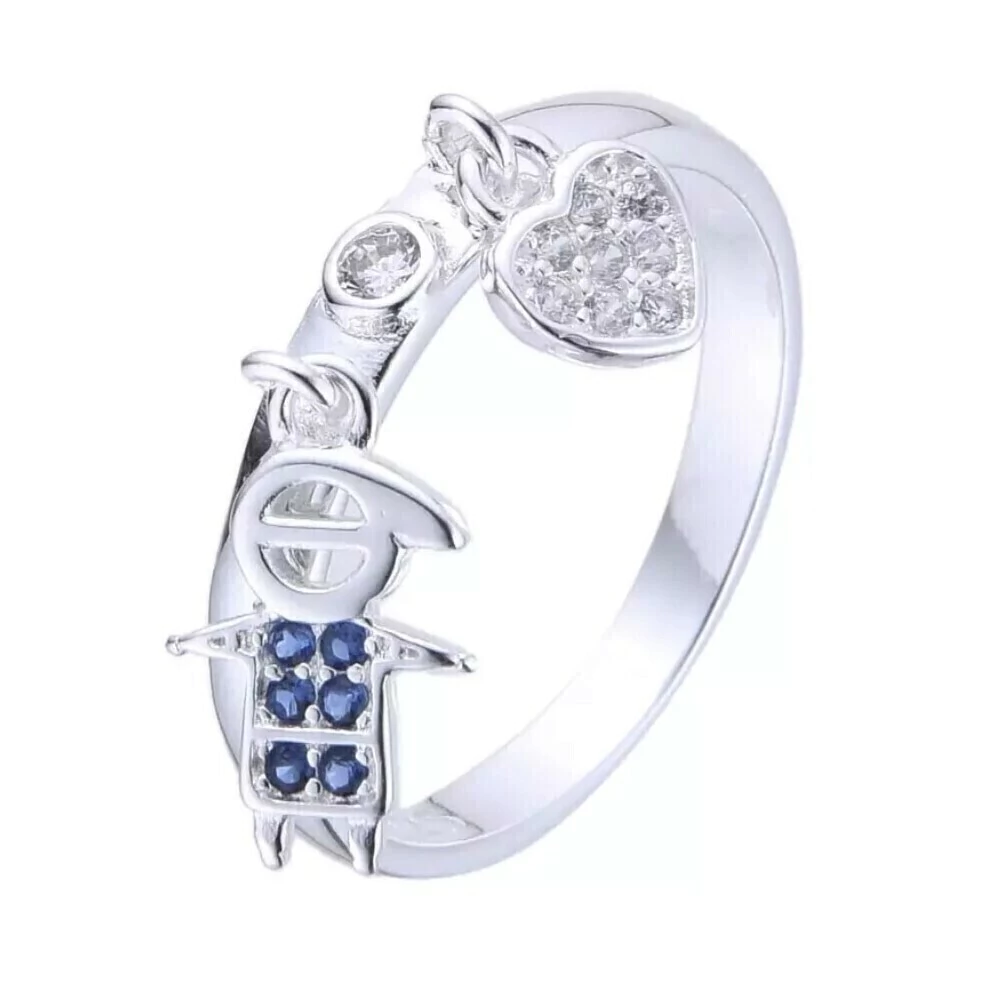 ANILLO CON DIJE DE NIÑO EN ZIRCONIA AZUL Y CRYSTAL EN PLATA 925